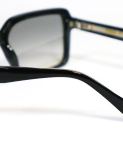 The Firenze Black Sunglasses feature a bold rectangular silhouette crafted from deep black Italian acetate. A unisex design with UV400 gradient lenses and gold logo details.